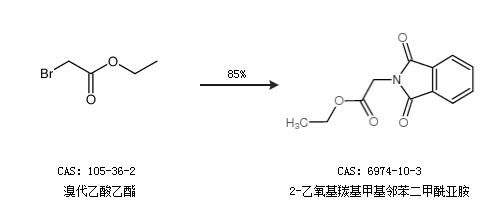 2.通过溴代乙酸乙酯合成2-乙氧基羰基甲基邻苯二甲酰亚胺,收率约85%;