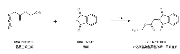 1.通过叠氮乙酸乙酯和苯酐合成2-乙氧基羰基甲基邻苯二甲酰亚胺,收率约81%;