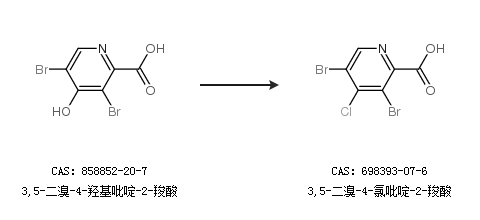 1.通过3,5-二溴-4-羟基吡啶-2-羧酸合成3,5-二溴-4-氯吡啶-2-羧酸