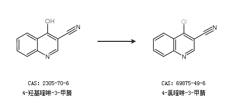 1.通过4-羟基喹啉-3-甲腈合成4-氯喹啉-3-甲腈