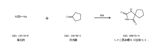 1.通过氰化钠和环戊酮合成1,3-二氮杂螺[4.4]壬烷-2,4-二酮,收率约65%;