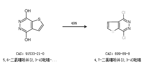 1.通过5,6-二氢噻吩并[2,3-d]吡嗪-4,7-二酮合成4,7-二氯噻吩并[2,3-d]吡嗪,收率约49%;