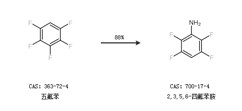 2.通过五氟苯合成2,3,5,6-四氟苯胺,收率约88%;