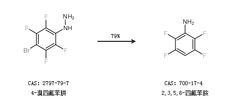 1.通过4-溴四氟苯肼合成2,3,5,6-四氟苯胺,收率约79%;