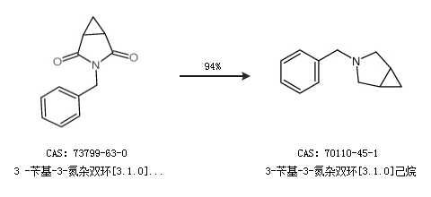 1.通过3 -苄基-3-氮杂双环[3.1.0]己烷- 2.4 -二酮合成3-苄基-3-氮杂双环[3.1.0]己烷,收率约94%;