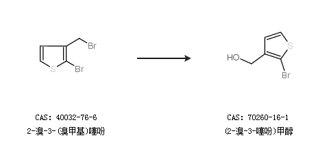 1.通过2-溴-3-(溴甲基)噻吩合成(2-溴-3-噻吩)甲醇