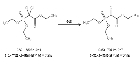 1.通过2,2-二氯-2-膦酰基乙酸三乙酯合成2-氯-2-膦酰基乙酸三乙酯,收率约94%;