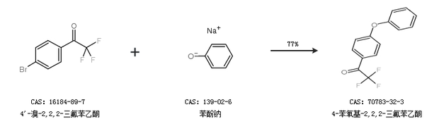 1.通过4''-溴-2,2,2-三氟苯乙酮和苯酚钠合成4-苯氧基-2,2,2-三氟苯乙酮,收率约77%;
