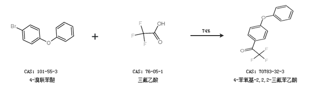 2.通过4-溴联苯醚和三氟乙酸合成4-苯氧基-2,2,2-三氟苯乙酮,收率约74%;