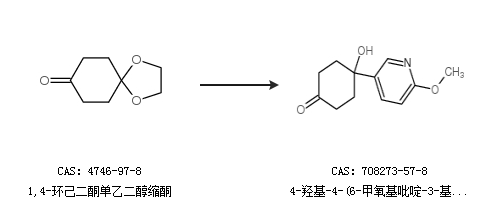 1.通过5-溴-2-甲氧基吡啶合成4-羟基-4-(6-甲氧基吡啶-3-基)环己酮