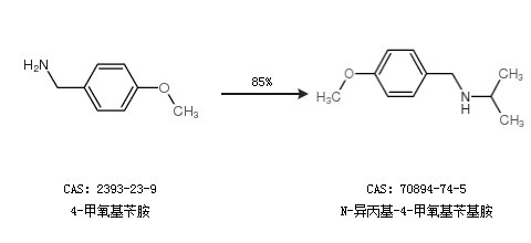 1.通过4-甲氧基苄胺合成N-异丙基-4-甲氧基苄基胺,收率约85%;