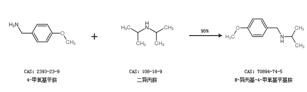 2.通过4-甲氧基苄胺和二异丙胺合成N-异丙基-4-甲氧基苄基胺,收率约98%;