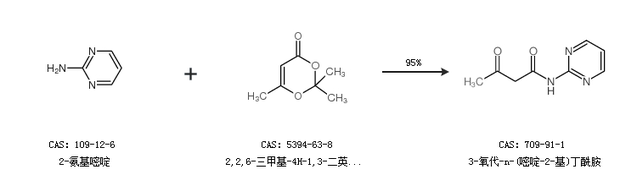 1.通过2-氨基嘧啶和2,2,6-三甲基-4H-1,3-二英-4-酮合成3-氧代-n-(嘧啶-2-基)丁酰胺,收率约95%;