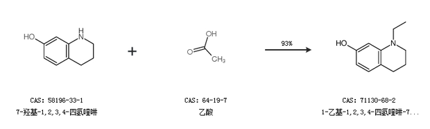 2.通过7-羟基-1,2,3,4-四氢喹啉和乙酸合成1-乙基-1,2,3,4-四氢喹啉-7-醇,收率约93%;