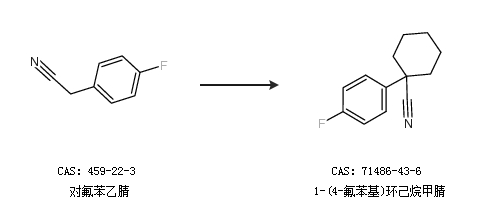 2.通过对氟苯乙腈合成1-(4-氟苯基)环己烷甲腈