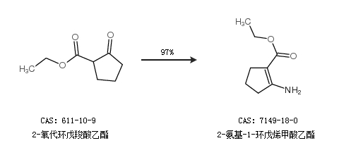 1.通过2-氧代环戊羧酸乙酯合成2-氨基-1-环戊烯甲酸乙酯,收率约97%;