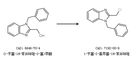 1.通过(1-苄基-1H-苯并咪唑-2-基)甲醇合成1-苄基-2-氯甲基-1H-苯并咪唑
