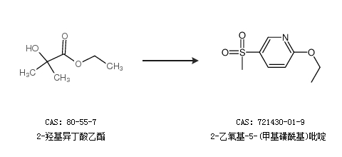 1.通过2-羟基异丁酸乙酯合成2-乙氧基-5-(甲基磺酰基)吡啶