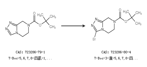 1.通过7-Boc-5,6,7,8-四氢-1,2,4-三唑并[4,3-a]吡嗪合成7-Boc-3-溴-5,6,7,8-四氢-1,2,4-三唑并[4,3-a]吡嗪