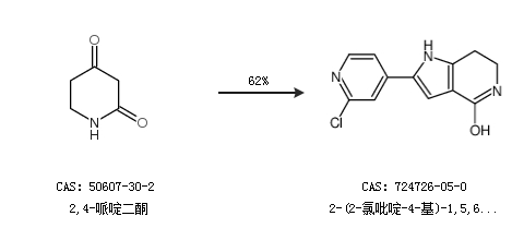 1.通过2,4-哌啶二酮合成2-(2-氯吡啶-4-基)-1,5,6,7-四氢-4H-吡咯并[3,2-c]吡啶-4-酮,收率约62%;