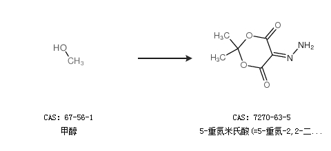 2.通过甲醇合成5-重氮米氏酸(=5-重氮-2,2-二甲基-1,3-二氧杂环己烷-4,6-二酮)
