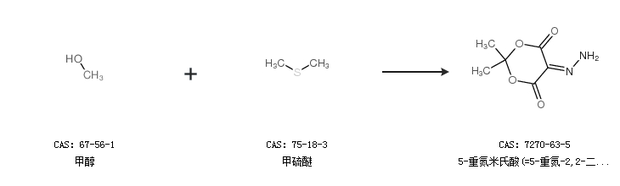 1.通过甲醇和甲硫醚合成5-重氮米氏酸(=5-重氮-2,2-二甲基-1,3-二氧杂环己烷-4,6-二酮)