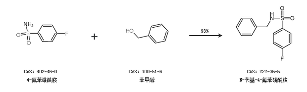 2.通过4-氟苯磺酰胺和苯甲醇合成N-苄基-4-氟苯磺酰胺,收率约93%;