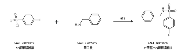 1.通过4-氟苯磺酰氯和苯甲胺合成N-苄基-4-氟苯磺酰胺,收率约97%;