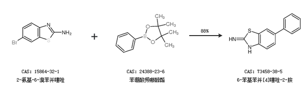 1.通过2-氨基-6-溴苯并噻唑和苯硼酸频哪醇酯合成6-苯基苯并[d]噻唑-2-胺,收率约88%;