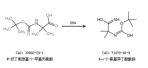 1.通过N-叔丁氧羰基-2-甲基丙氨酸合成Boc-2-氨基异丁酸酰胺,收率约88%;