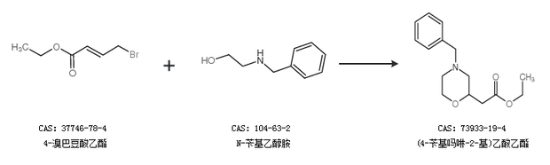 1.通过4-溴巴豆酸乙酯和N-苄基乙醇胺合成(4-苄基吗啉-2-基)乙酸乙酯