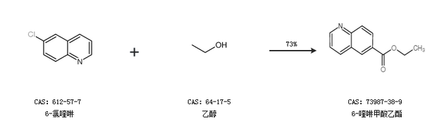 2.通过6-氯喹啉和乙醇合成6-喹啉甲酸乙酯,收率约73%;