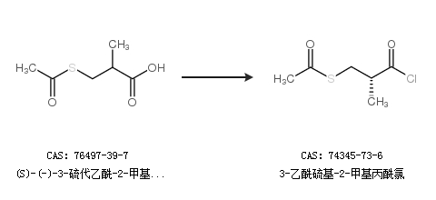 中文别名 L-3-(乙酰基硫基)-2-甲基丙酰氯;(R)-3-(乙酰硫基)异丁酰氯;3-乙酰硫基异丁酰氯;(R)-3-(乙酰基硫代)-2-甲基丙酰氯;