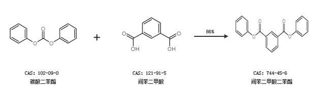 1.通过碳酸二苯酯和间苯二甲酸合成间苯二甲酸二苯酯,收率约86%;