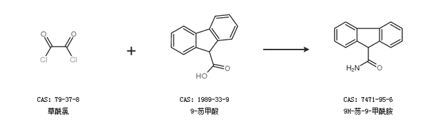 2.通过草酰氯和9-芴甲酸合成9H-芴-9-甲酰胺