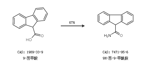1.通过9-芴甲酸合成9H-芴-9-甲酰胺,收率约67%;