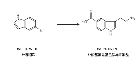 1.通过5-溴吲哚合成5-羧基酰氨基色胺马来酸盐