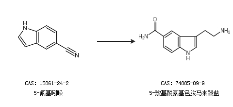 2.通过5-氰基吲哚合成5-羧基酰氨基色胺马来酸盐