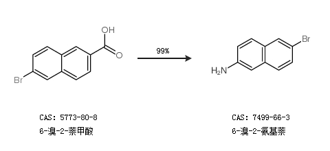 1.通过6-溴-2-萘甲酸合成6-溴-2-氨基萘,收率约99%;