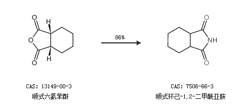 2.通过顺式六氢苯酐合成顺式环己-1,2-二甲酰亚胺,收率约86%;