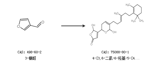 2.通过3-糠醛合成4-[3,6-二氢-6-羟基-5-[4-甲基-6-(2,6,6-三甲基-1-环己烯-1-基)-3-己烯基]-2H-吡喃-2-基]-5-羟基-2(5H)-呋喃酮