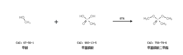 1.通过甲醇和甲基膦酸合成甲基膦酸二甲酯,收率约87%;