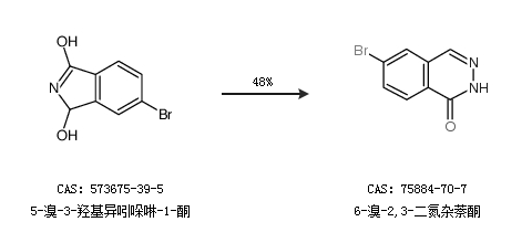 1.通过5-溴-3-羟基异吲哚啉-1-酮合成6-溴-2,3-二氮杂萘酮,收率约48%;