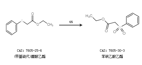 1.通过(甲基硫代)醋酸乙酯合成苯砜乙酸乙酯,收率约99%;
