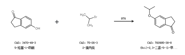 1.通过5-羟基-1-茚酮和2-溴丙烷合成(9ci)-2,3-二氢-5-(1-甲基乙氧基)-1H-茚-1-酮,收率约97%;