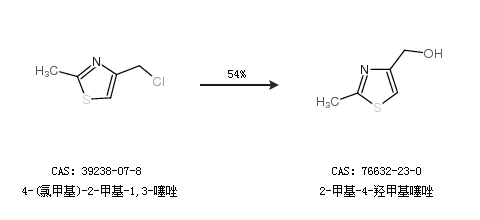 2.通过4-(氯甲基)-2-甲基-1,3-噻唑合成2-甲基-4-羟甲基噻唑,收率约54%;