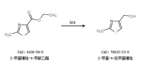 1.通过2-甲基噻唑-4-甲酸乙酯合成2-甲基-4-羟甲基噻唑,收率约92%;