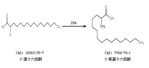 1.通过2-溴十六烷酸合成2-氨基十六烷酸,收率约29%;