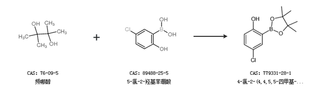 1.通过频哪醇和5-氯-2-羟基苯硼酸合成4-氯-2-(4,4,5,5-四甲基-1,3,2-二噁硼烷-2-基)苯酚