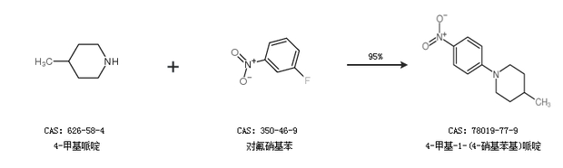 1.通过4-甲基哌啶和对氟硝基苯合成4-甲基-1-(4-硝基苯基)哌啶,收率约95%;